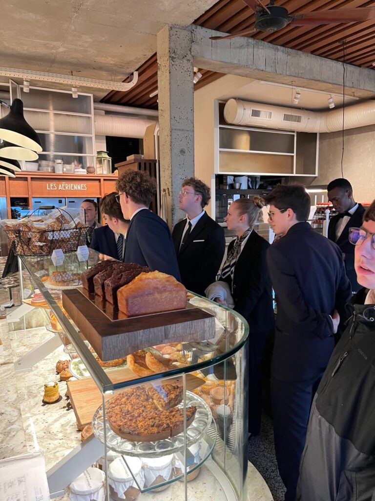 La matinée a débuté par la découverte de la boulangerie, des cuisines et de la salle de restaurant, où nos étudiants ont pu observer les subtilités de la mise en place d’un établissement gastronomique. La visite s’est poursuivie dans les chambres du Château Richeux puis à la Ferme du Vent, établissement proposant un espace spa et un hébergement haut de gamme.