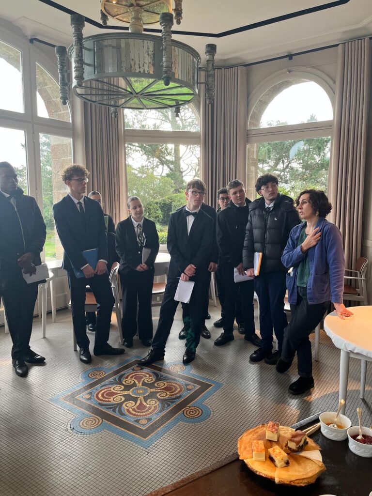 C’est Valentine Roy, ancienne étudiante du lycée et aujourd’hui directrice de salle du restaurant Le Coquillage à Saint-Méloir-des-Ondes, qui a orchestré cette visite. Le Coquillage, situé au sein du prestigieux Château Richeux, est dirigé par Hugo Roellinger, chef trois étoiles Michelin et élu Meilleur cuisinier 2025 par le guide Gault et Millau.