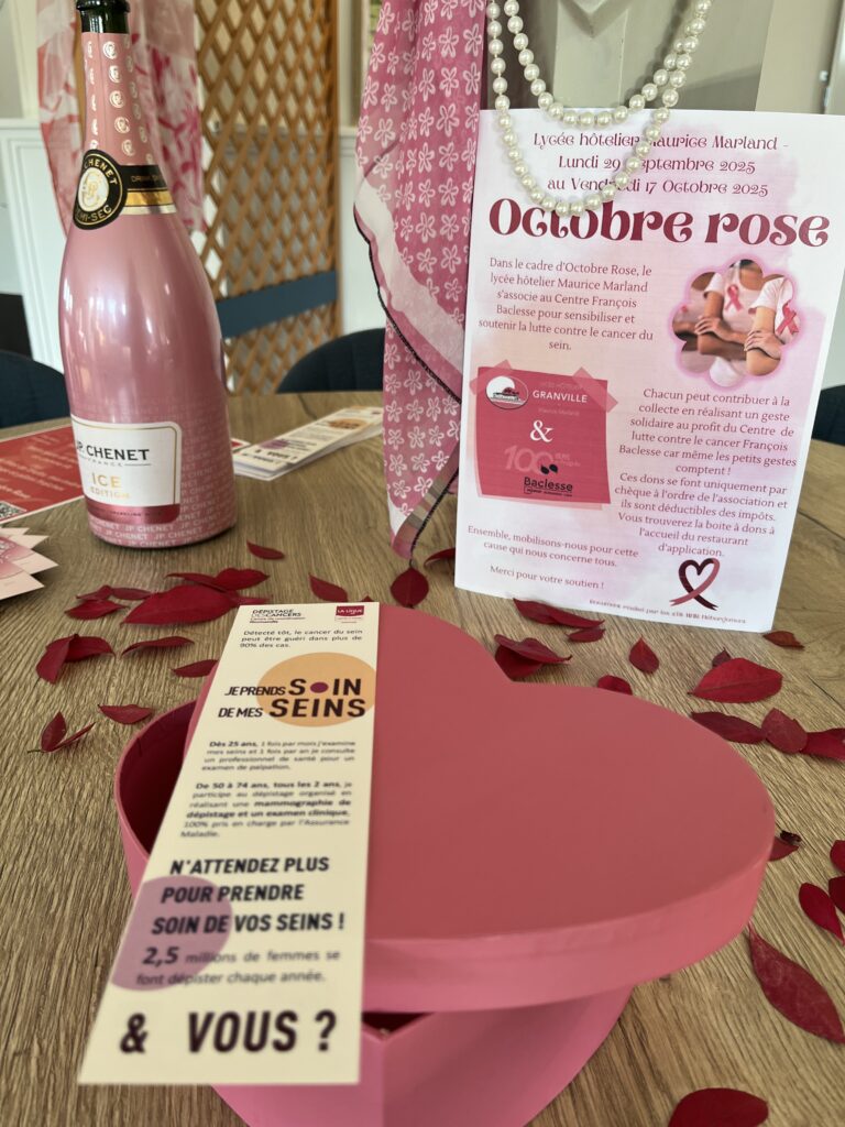 À l’occasion d’Octobre rose, le lycée Marland s’associe au centre de lutte contre le cancer François Baclesse. Une collecte de dons est organisée au restaurant d’application, dont l’intégralité sera reversée au centre pour financer la recherche contre le cancer.